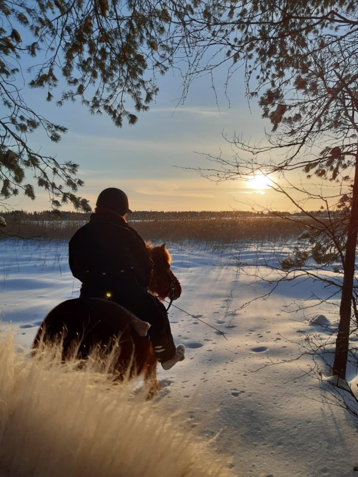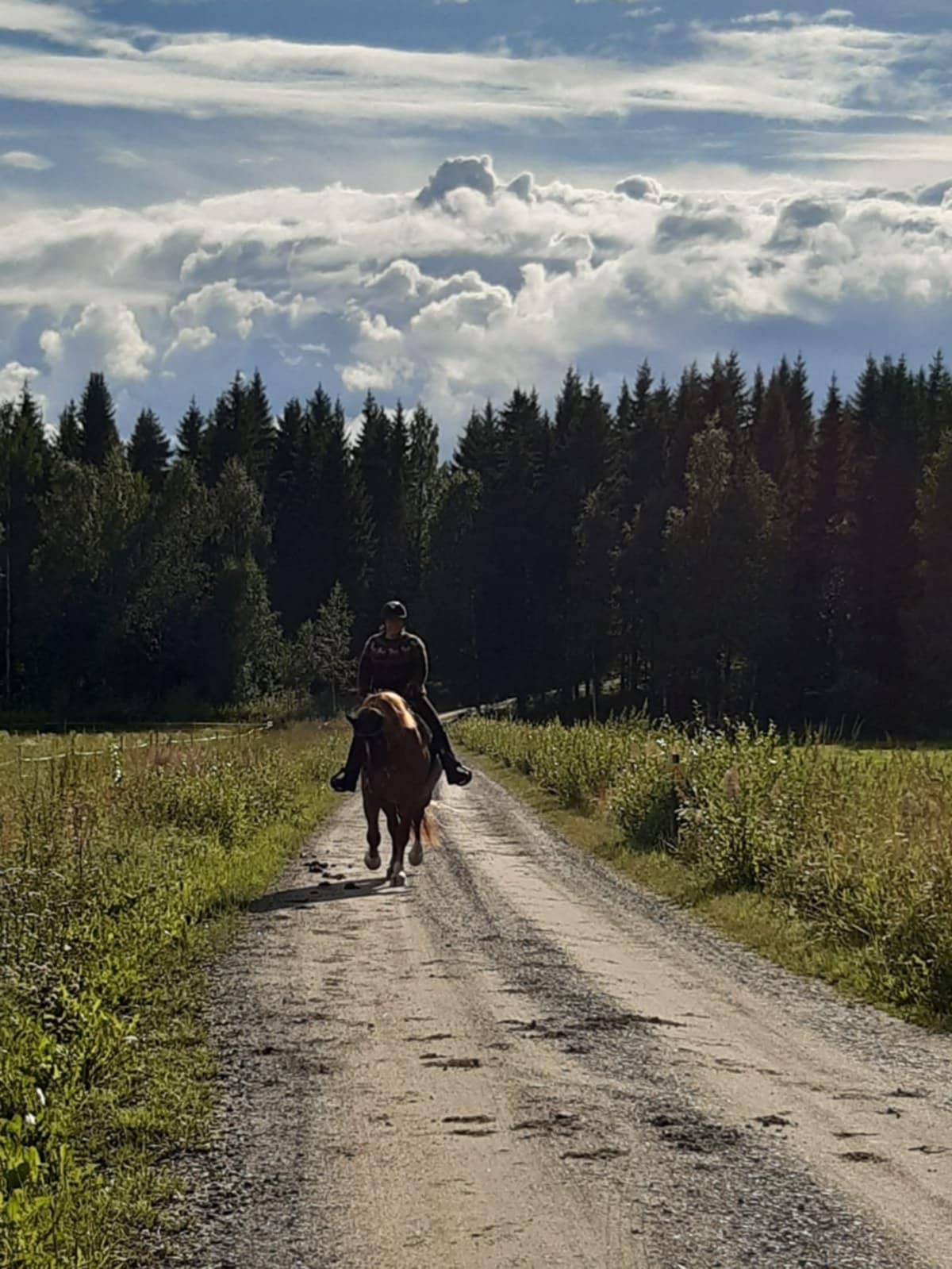- Se oli perjantai 11.4.2025. Oli tiedotettu vahvasti, että takatalvi on tulossa. Tämä oli varmasti tiedossa myös Joensuun kaupungilla. Siis se, että lunta on reippaasti tulossa. Vein mieheni olkapääleikkaukseen ja sitten vein auton parkkihalliin ja lähdin keskustaan päin katua ylittäen. Aurauskalusto ei ollut vielä kulkenut, eikä ollut hiekoitettu. Tuore nuoskaantunut, ja autojen pyörien alla littaantunut lumi, oli hirveän liukasta, ja siinä minulla sitten jalka lipesi pahasti, niin että menin melkein spagaattiin. Sitten kuului jäätävä pamaus. Sen jälkeen tuli aivan hirvittävä kipu, enkä ensin tajunnut mitä tapahtui. Kun yritin nousta, kipu oli niin järkyttävä, että oksensin, enkä päässyt siitä ylös, vaan vanhempi pariskunta tuli auttamaan. Auttajani kutsuivat ambulanssin ja päivystyksessä kävi ilmi, että takareiden koko lihasryhmä oli revennyt ja se pitäisi leikata. Mutta julkisella ei tällaisia leikkauksia enää tehdä, vaan niiden annetaan parantua itsestään ja minut laitettiin kotiin seuraavana päivänä. Maanantaina soitin omaan vakuutusyhtiööni, että miten tässä pitäisi toimia, kun olen hevosalan yrittäjä ja toimintakyky on ehdottoman tärkeää työssäni. Sieltä sanottiinkin, että nyt ihan heti välittömästi menet yksityiselle ortopedille, jalka on hoidettava heti kuntoon. Ja niinhän minä sitten tein. Minun omalla vakuutuksellani jalka sitten leikattiin yksityisellä puolella. Reiluun kolmeen kuukauteen en saanut kävellä kuin kyynärsauvoilla, varvastyöntöä ei saanut olla ollenkaan. En saanut kumartua, enkä istua, ettei lihakset repeä uudestaan, esimerkiksi vessassa käynti oli tosi hankalaa. Ja se kipu, se oli aivan hirveä. Oli kesäaika ja vuoden paras sesonki - ja emäntä oli kipeä. Ori jouduttiin viemään valmentajalle Pieksämäelle. Eihän sitä astunutta oria voinut täällä pitää opiskelijan käsiteltävänä. Se oli myös kovassa kisakunnossa. Siitä tuli sitten tietysti lisäkuluja, kun se oli siellä Pieksämäellä eikä omassa tallissa. Puoli vuotta jouduttiin pitämään ori poissa kotoa.
