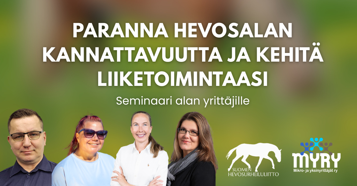 Hevosalalla moni toimii yrittäjänä tai harkitsee oman toiminnan kehittämistä seuraavalle tasolle. Mutta miten yritysideasta rakennetaan kannattava kokonaisuus? Miten hinnoittelu, kustannukset ja oma työ saadaan tasapainoon arjen realiteettien kanssa?